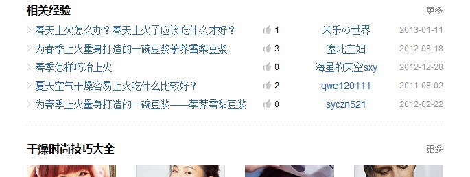 從上面的兩張圖片,我們看到的是百度經驗對標題進行了加粗強調,對相關內容文章進行了文字和圖片導航。這裡頁面右側還有一部分作者相關文章的導航。這裡我就不截圖了。這裡強調的就是增加了用戶對相關內容的進一步了解,增加了訪問頁面的深度,提升用戶體驗。