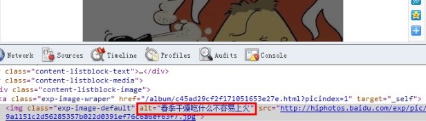 從上面的源碼看,百度經驗對經驗裡的圖片采取了全部一樣的ALT備注內容。“春季干燥吃什麼容易上火”備注了全部圖片。這也是在百度站長工具裡對我們網站提示的:相關圖片缺少文字說明。