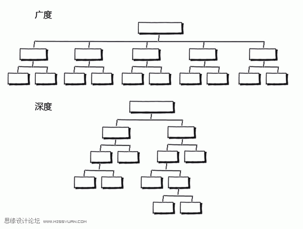如圖,為什麼搜索引擎提倡扁平結構,因為扁平結構只需要用最少的點擊次數就能夠達到目的地,而縱深結構就要多次的點擊才能達到。這就讓搜索引擎蜘蛛更不容易達到目的地,更重要的是用戶如果要點擊4-5次才能達到目的地,很容易提高跳出率,所以搜索引擎鼓勵站長們要創建扁平結構的原因。