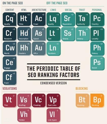 這是因為,相對來說,我們不認為那些因素很重要。我們不想涵蓋谷歌提到的10000多個具體的細節因素。相反,本圖表只想幫助seo新人把精力放在重要的影響因素上,或許也可以幫助一些經驗豐富的seo從業者重新認識seo,如果他們感到在seo的桑林中有些許迷失的話。