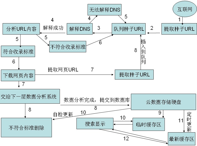 1、抓取網頁系統:分為探測系統和下載系統,探測系統就是我們平常說的蜘蛛,蜘蛛在互聯網上爬行時探測到一個網站的URL,就會把URL所指向的頁面利用下載系統,下載到搜索引擎的服務器上,然後將頁面交給數據分析系統。