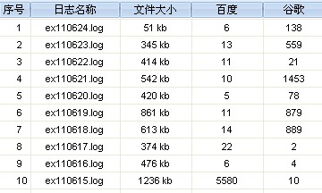 想把SEO做好,一定要對搜索引擎的蜘蛛足夠了解,要了解蜘蛛,就要認真對日志進行分析,下面我愛騾就根據網站的日志試著對蜘蛛做簡要的分析,下面的幾張截圖是之前分析的網站日志,我們主要就來看看百度蜘蛛和谷歌蜘蛛吧,其他SE果斷無視。