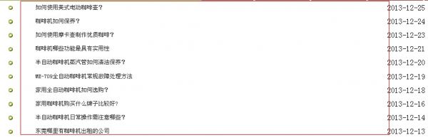 SEO的最終目的就是讓用戶通過搜索引擎搜索某個關鍵字到你的網站,了解你的產品以至達到銷售的目的。在明白了這樣的前提下,在做一個網站優化之時就得對用戶的搜索行為進行分析研究,了解用戶的真正需求。如筆者當前所優化關於銷售“咖啡機”的站,在筆者著手優化這個網站之前,就得研究購買咖啡機這群用戶會通過什麼樣的關鍵字來搜索,如:筆者通過關鍵字挖掘工具得知“咖啡機使用”“咖啡機維修”“家用咖啡機”等這樣的關鍵字每天都會有用戶通過這些詞來檢索。在筆者知道這一用戶行為之後,筆者就可以確定了優化的目標和方向,撰寫原創相關性內容,如下圖為咖啡機的相關性原創軟文。
