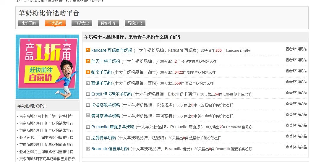 百度搜索“羊奶粉”,出現了羊奶粉排行榜,首頁也有排行榜的排名,為什麼用戶還會搜?這個是說明了網站內容沒有很好的滿足用戶的需求。