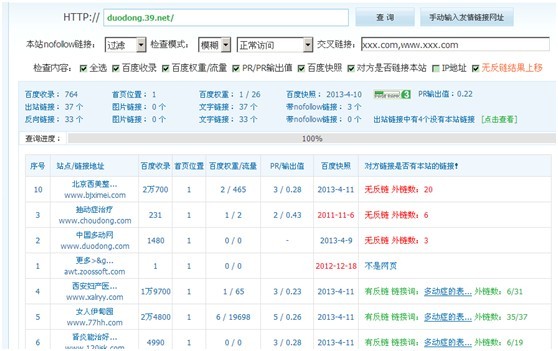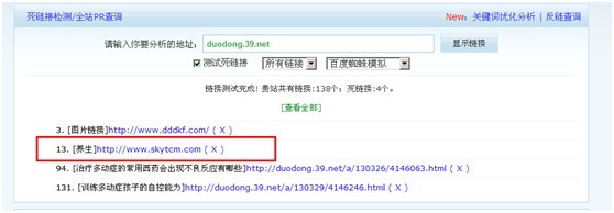 如果一個網站的死鏈接太多,就會影響蜘蛛在網站的爬行,不利於網站整體的收錄和排名,所以要注意死鏈接的查詢。從duodong.39.net這個域名的死鏈接來看,它的死鏈接不是很多,而我圖片中標明的鏈接並不是死鏈接,需要我們對查詢工具抱有一定的懷疑態度。同時將死鏈接提交給相關負責人,根據網站需求進行處理。