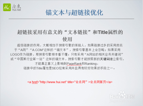 1、超鏈接采用有意義的“文本鏈接”和Title屬性的使用