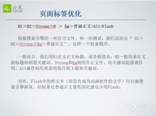 根據搜索引擎的一些官方文件,和一些測試,我們總結出“ H1>H2>Strong≥Em>普通正文”,這樣一個權重順序。