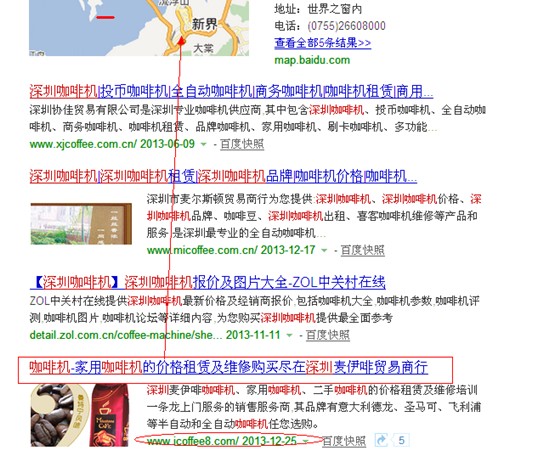 不管是從事任何職業,堅持和執行力都首當其沖這點相信每個人都明白這個道理,但是真真能夠做到的的確沒有幾個人,以至於哪些沒有做到這點的朋友,也就體驗不到堅持和執行力最終所帶來的勝利果實。對於這一點在SEO行業中最為重要,從事SEO的站長都明白要想把一個新建設的網站關鍵字優化到首頁,這不是一天兩天就能夠做到的,對於一個新站來說要想達到一個較好的效果,一般需要堅持3-6個月。這一優化過程中就得嚴格堅持執行優化方案,這是一個漫長的過程。只要按照正確的優化方案堅持下去一定會收到良好的效果,但如果沒有強力的執行力和堅持的品質,即使再好的優化方案也是等於0.對於這點就來與大家分享當前所優化關於銷售“咖啡機”的一個網站在筆者的堅持和強力的執行力下所取得最終勝利的果實。
