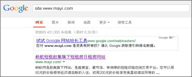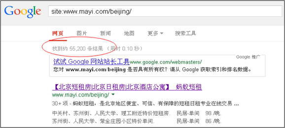 螞蟻短租僅北京頻道頁面的篩選條件組合後將會生成690000多個頁面,但被收錄的卻僅有55200個頁面,收錄率約為8%,全國加在一起將會是什麼樣的比例呢?