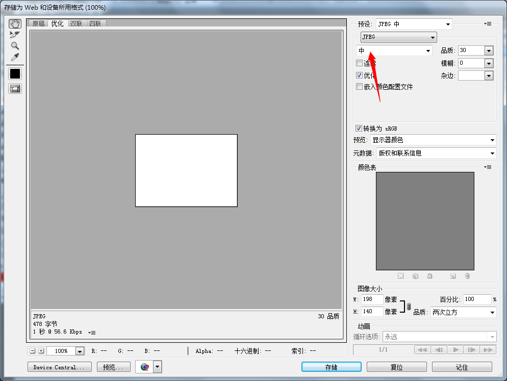 第二步:根據你的需求選擇格式和圖片的質量,如果圖片不需要描述非常細節,可以選擇中,如果有特殊需求,選擇高也沒有多大影響。然後點擊【存儲】即可。