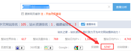 反鏈數據同樣可以通過站長工具去獲取,如下圖: