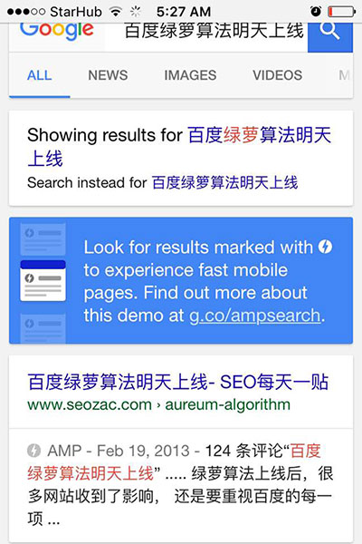 Google最近在大力推AMP,很可能AMP會變成國際上信息類網站移動頁面的主流。采用AMP的頁面是否對排名有幫助呢?目前是沒有,Google明確表示,AMP不在排名算法中,但誰知道以後呢。SEO們,尤其是做英文網站的,還是要密切關注。