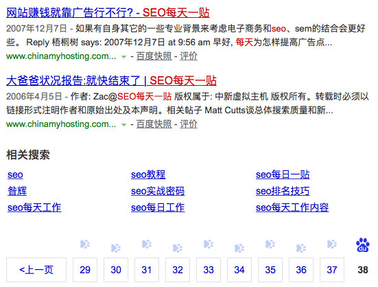 有意思的是,春哥博客剛上來的時候只是一個版本,不是兩個一起上來的,印象中至少應該有兩三個月了吧,也就是說,百度剛開始是沒有迷糊的。為什麼到7月份又迷糊了呢?會不會是因為本來沒有做301,做了之後反倒讓百度迷糊一陣呢?我不知道春哥博客是什麼時候做的301,如果春哥看到這篇帖子,也許可以告訴我一下。