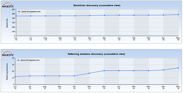 注意縱坐標刻度,是有百倍差距的。看了外鏈增長的迅猛趨勢,也可以大概了解爬上來的部分原因了。