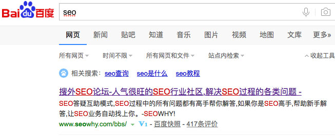 另一個最近出現些混亂的是seowhy的論壇。現在百度返回的是二級目錄:
