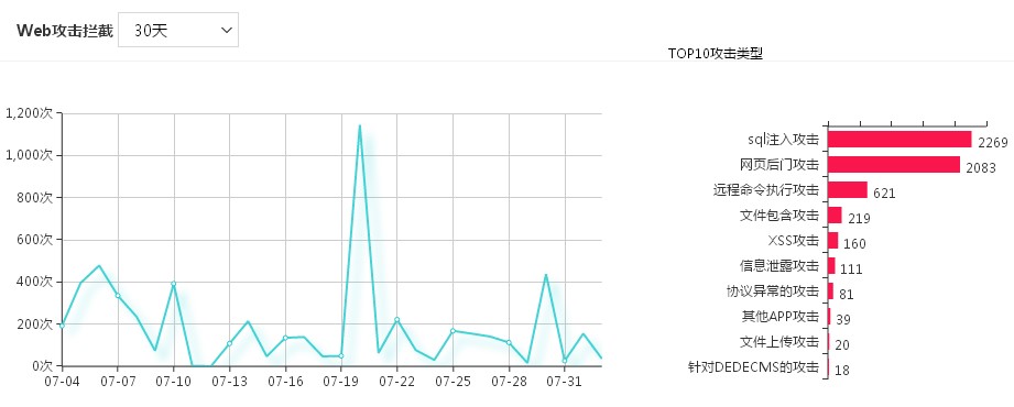 2、使用雲防護工具:通常選擇百度雲加速,在安全防護方面,百度雲加速可以同時防護包括SQL注入、XSS、Web服務器漏洞、應用程序漏洞以及文件訪問控制等問題在內的十多種黑客滲透攻擊和SYN Flood、UDPFlood、ICMP Flood、TCP Flood以及CC在內的多種DDoS攻擊。通過雲加速後台,可以看到每天的網站防護情況。