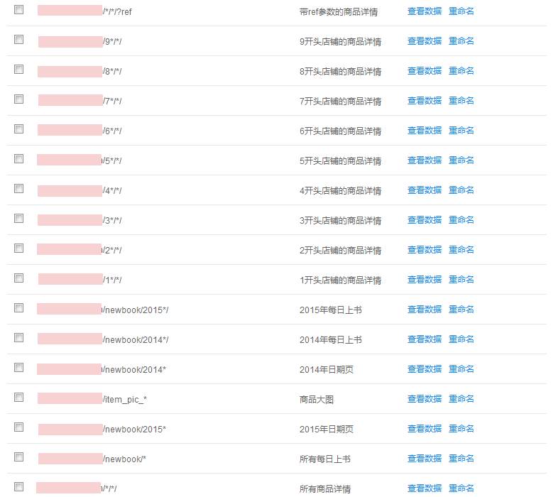 3、各頁面類型的流量情況,通過GA正則細分流量數據(包括重復頁面的流量情況);