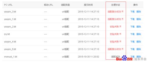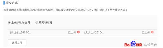 url適配格式說明:提供一個txt文檔,文檔中數據為兩列,中間用空格隔開,第一列為PC版URL ,第二列為PC頁面對應的移動版頁面。
