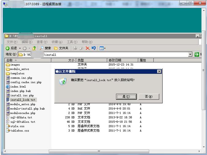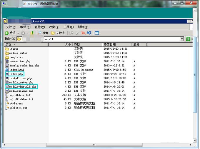 接著我們修改鎖定文件(install文件下的index.php.bak和module-install.php.bak文件),去除它們的後綴名.bak。