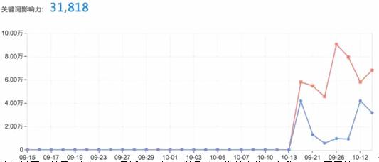 藍色曲線即是自己的影響力,紅色曲線是此關鍵詞最大的影響力,一對比,即可知道自己所處的地位了吧?