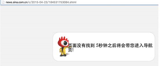 3,頁面需要用戶和蜘蛛可以正常訪問,但由於刪改或誤操作導致反復上下線形成協議死鏈或內容死鏈。例如:http://news.sina.com.cn/2015-12-05/doc-ifxmhqaa9933763.shtml