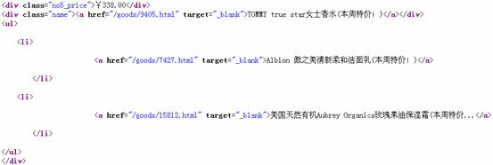 <div class=“name”><a href=“/goods/9405.html” target=“_blank”>TOMMY true star女士香水(本周特價!)</a></div>