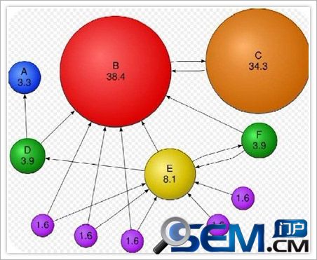 假設有兩個頁面A和B,B頁面通過一個鏈接指向A頁面,那麼,B就是A的一個反鏈。在B網站上有一個A網站的鏈接,即相當於B網站投了A網站一票,A網站獲得的投票越多,權重就越高,排名效果就越好;當然B網站的權重越高,那麼A網站獲得的投票權重就越高,所以高質量的反鏈對網站的作用是不容忽視的。一個網站的反鏈不僅僅包含友情鏈接,同時包含本網站其他頁面的鏈接。下圖即是一個利用反向鏈接增加網站權重的示意圖: