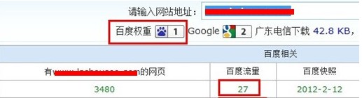 所謂的百度權重僅僅是第三方網站提供的一個參考數據,百度權重數值也是模擬百度算法來實現的,比如網站收錄、外鏈、關鍵詞排名、友情鏈接、主機穩定性等各種因素來影響的,但是你會經常發現,在網站基本SEO數據正常的情況下,百度權重有時候會出現2個不同的數值,仔細觀察你就會發現其中的奧秘,因為我的博客是1,所以就結合我們公司的數據來說明一下: