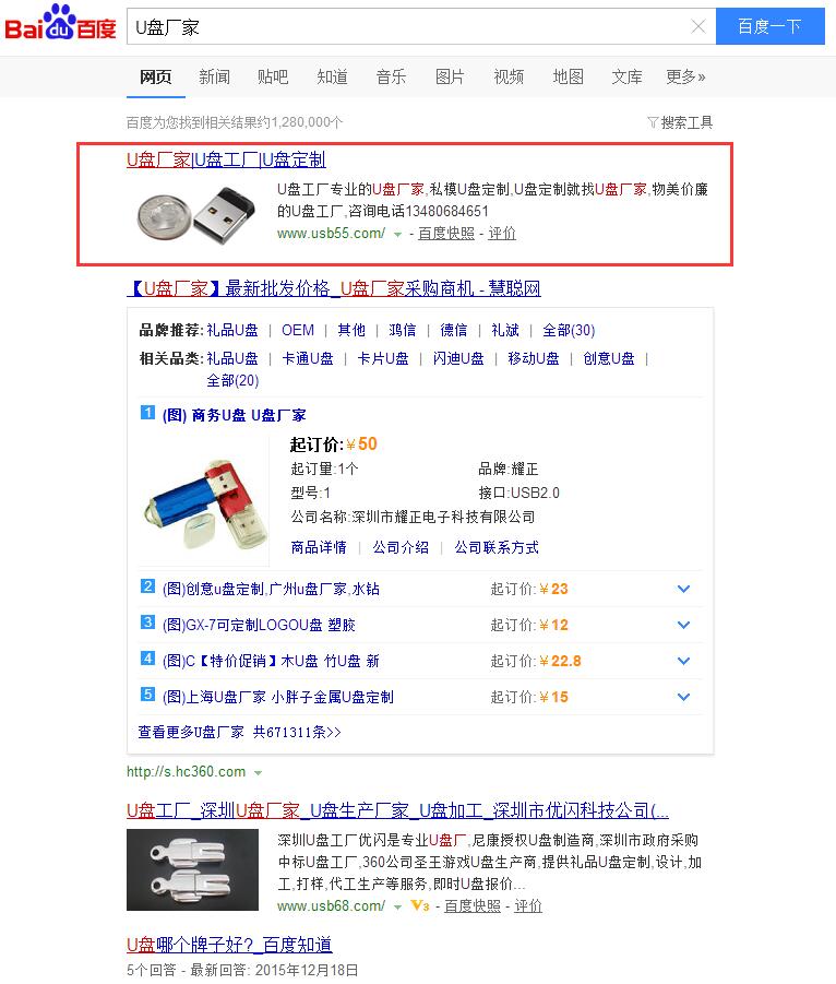 每天有100多人在百度上找U盤廠家,能搜索U盤廠家說明別人是需要批量購買才找U盤廠家的