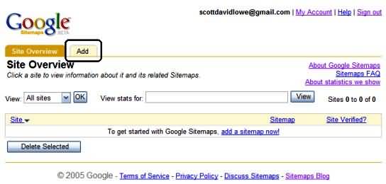 在“Site Overview”屏幕中,選擇“Add”按鈕。