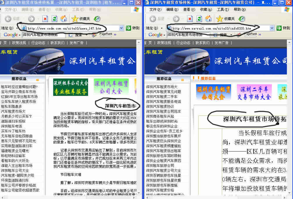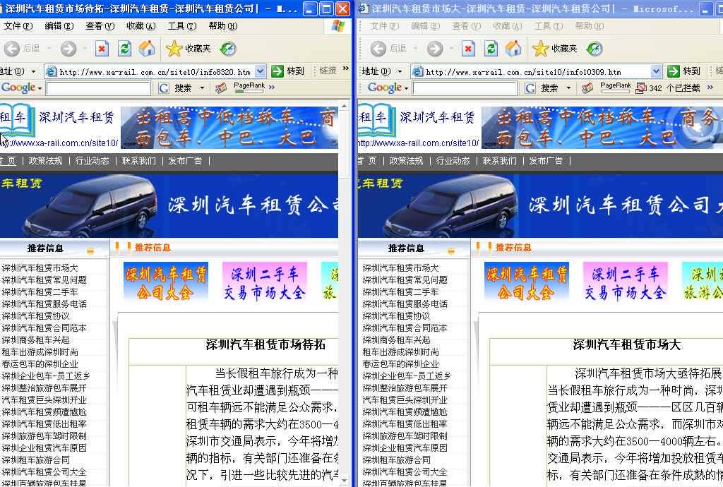 深圳160對外大約有120多個這樣互為鏡向,要麼就是內容完全一樣只是路徑不同,要麼就是在域名,標題上,字體上,存放位置上,結構上稍微調整.而網站的內容,似乎永遠都是那些內容.第一個包含了第二個網站的內容,而第二個可能有包含了第三個網站的內容.反過來,第三個又有可能包含了前面兩個網站的內容.互為鏡向,關系錯綜復雜.