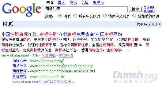 圖二: 搜索“商標注冊”,中國注冊商標在線的表現。